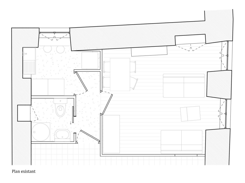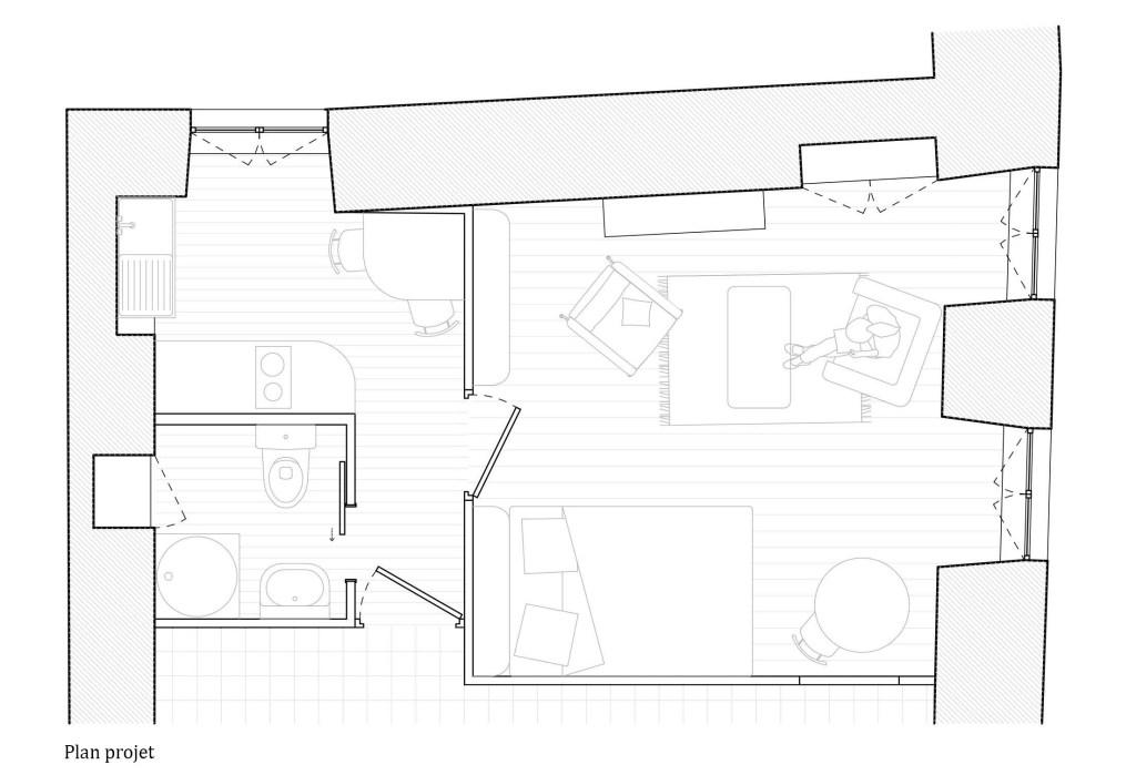 Aménagement et rénovation complète d'un studio dans la Haute Ville de Granville avec création de mobilier sur mesure